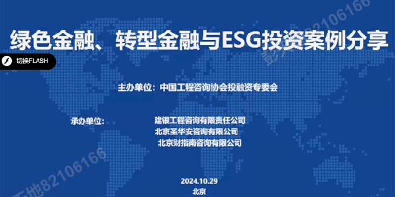 2024-10-2912934 次2024年10月29日下午2:30,由中国工程咨询协会投融资专委会主办,由建银工程咨询有限责任公司、北京圣华安咨询有限公司和北京财指南咨询有限公司承办的《绿色金融、转型金融与E…
